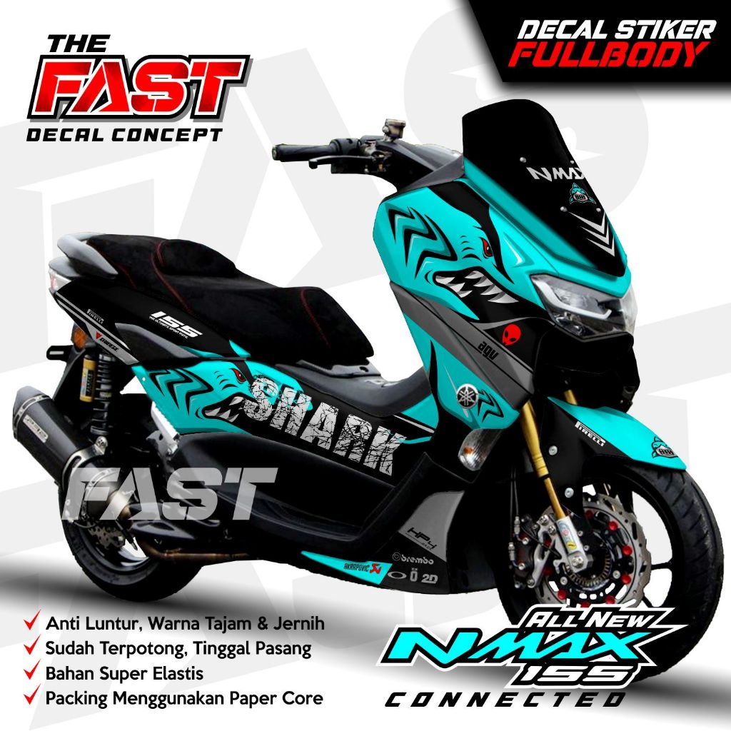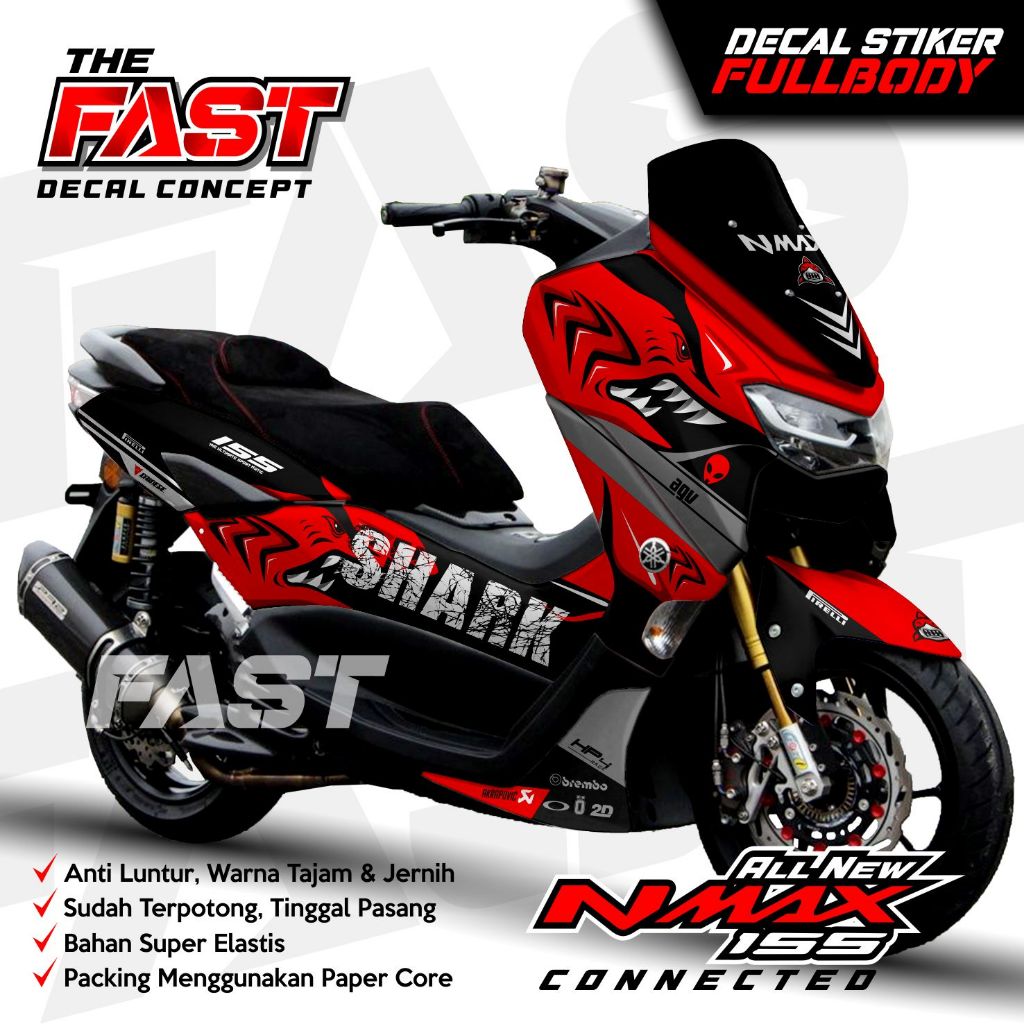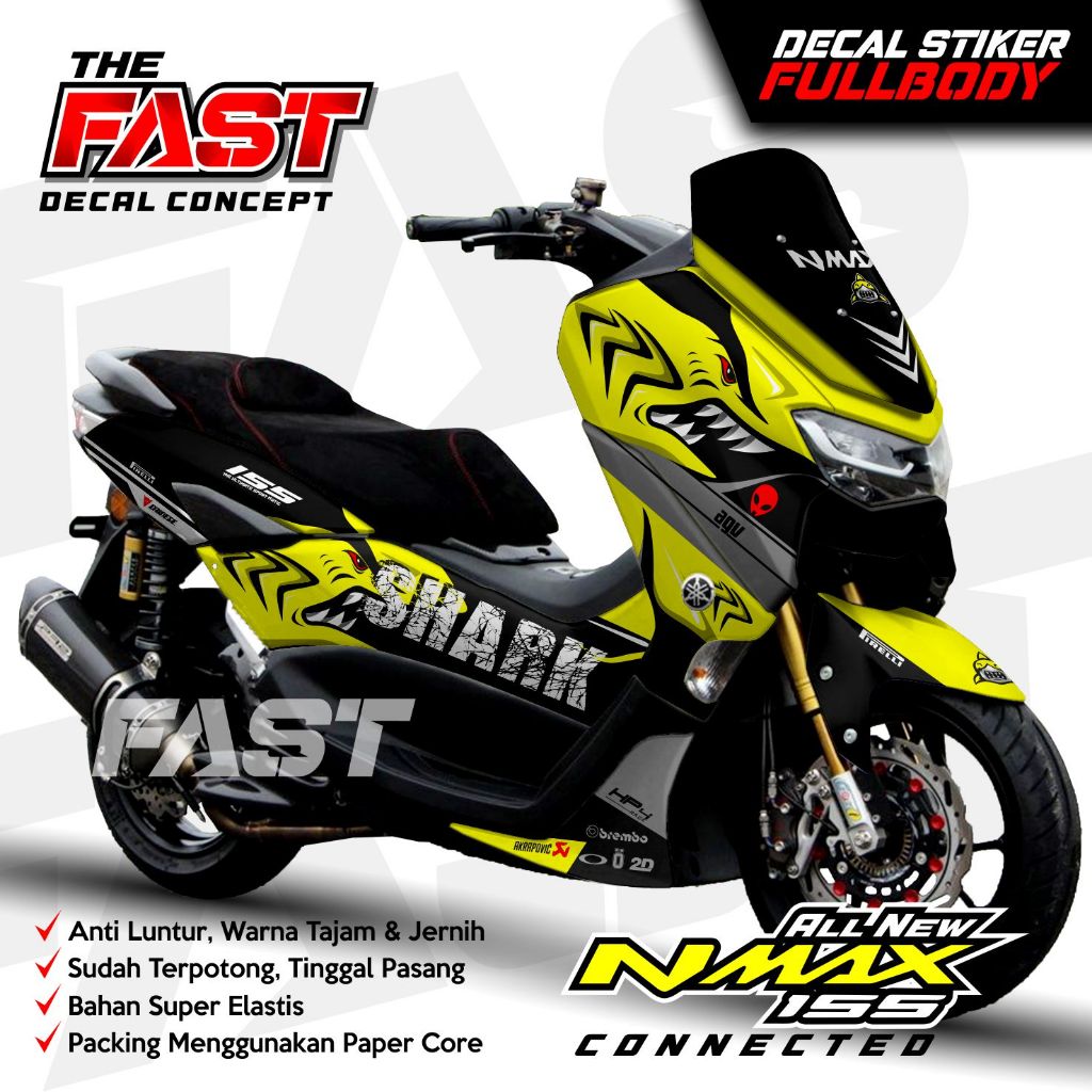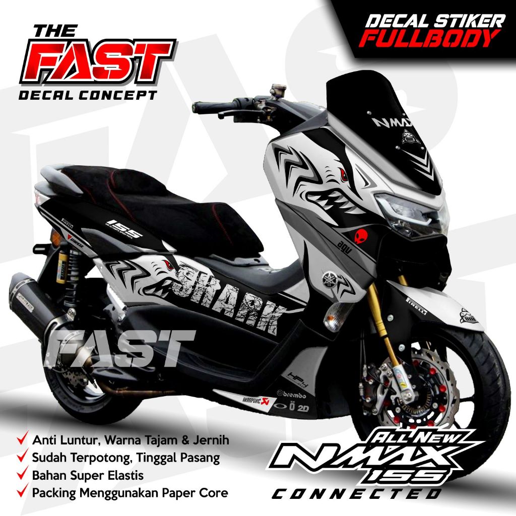 BISA COD Decal Sticker Yamaha Nmax 155 New Fullbody Shark Decal stiker nmax new / stiker nmax full body design Shark Decal Nmax 155 New Connected Full Body Stiker Sticker Motor Yamaha Modif Variasi Aksesoris Dekal Nmax Shark