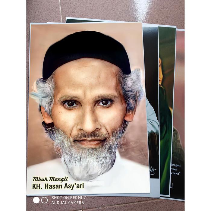 BISA COD POSTER SYECH HASAN ASY'ARI MBAH MANGLI LUSTER UV BISA CUSTOM, 50x70CM