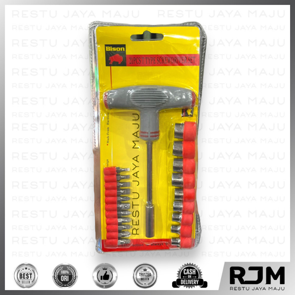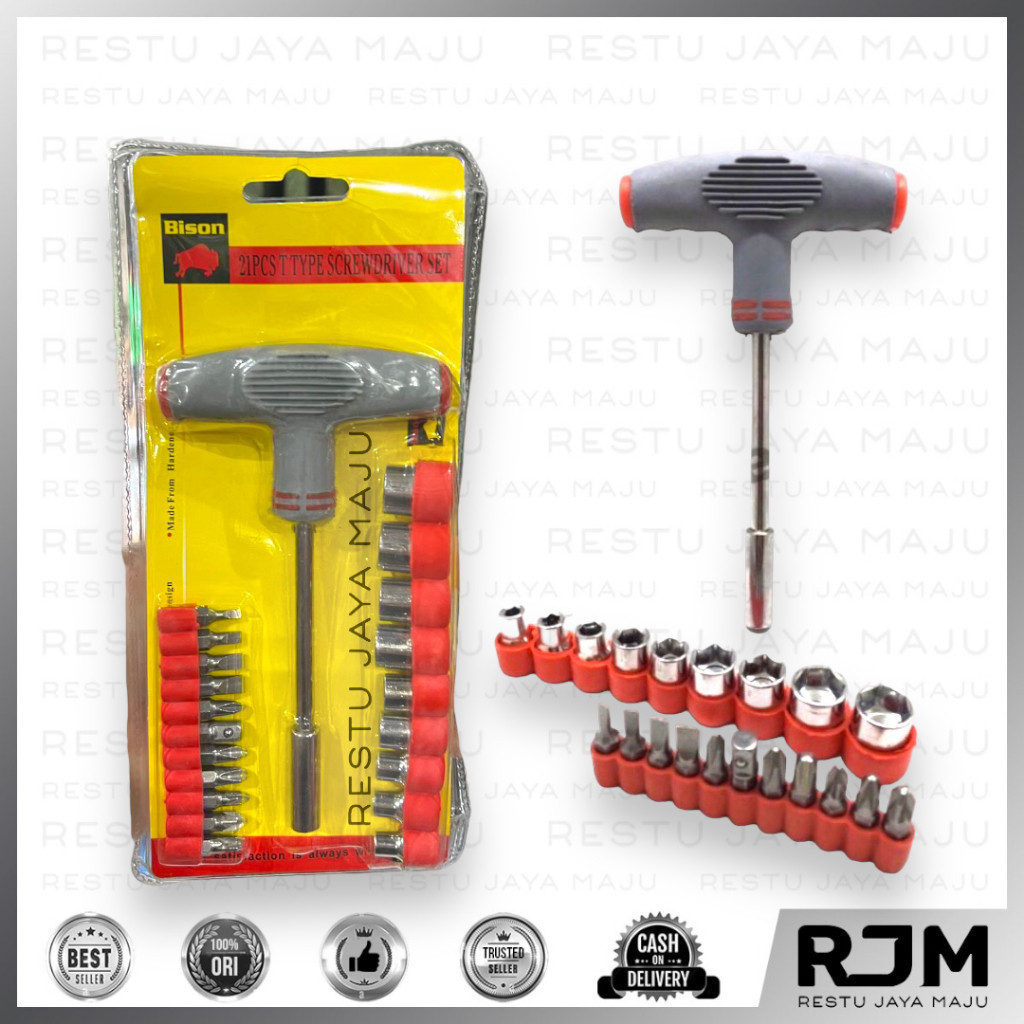 BISON Obeng Sok Set 21pcs Model Gagang T Mata Obeng Kunci Sock Shock rj