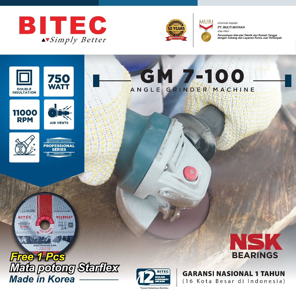 BITEC Gerinda Tangan 4 Inch 750W Small Grinder Profesional Garansi Resmi 1 Tahun GM 7-100