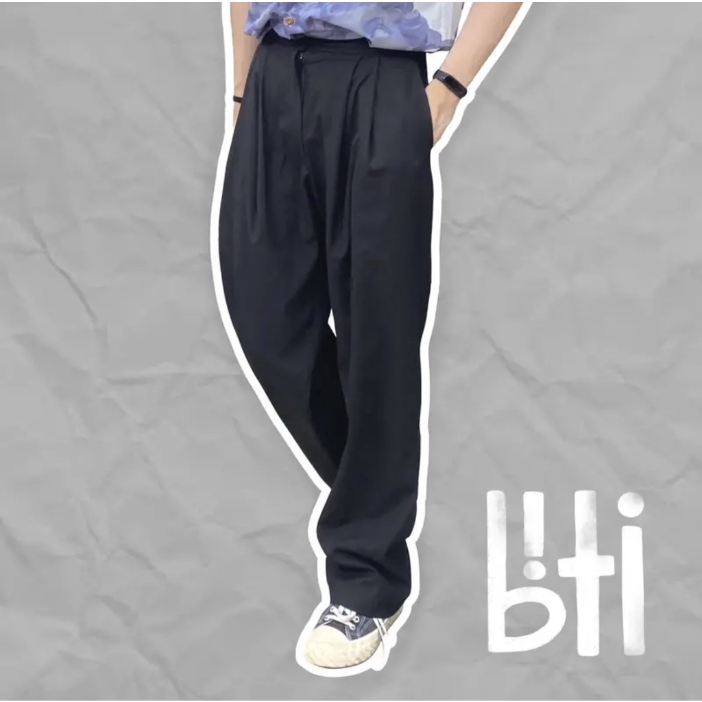BITI Celana Jaksel High Waist Pants | korean loose bahan katun longgar formal untuk kerja kuliah kantor casual pria cowok keren unisex panjang ankle biti22 - celana oversized wide leg pinggang karet