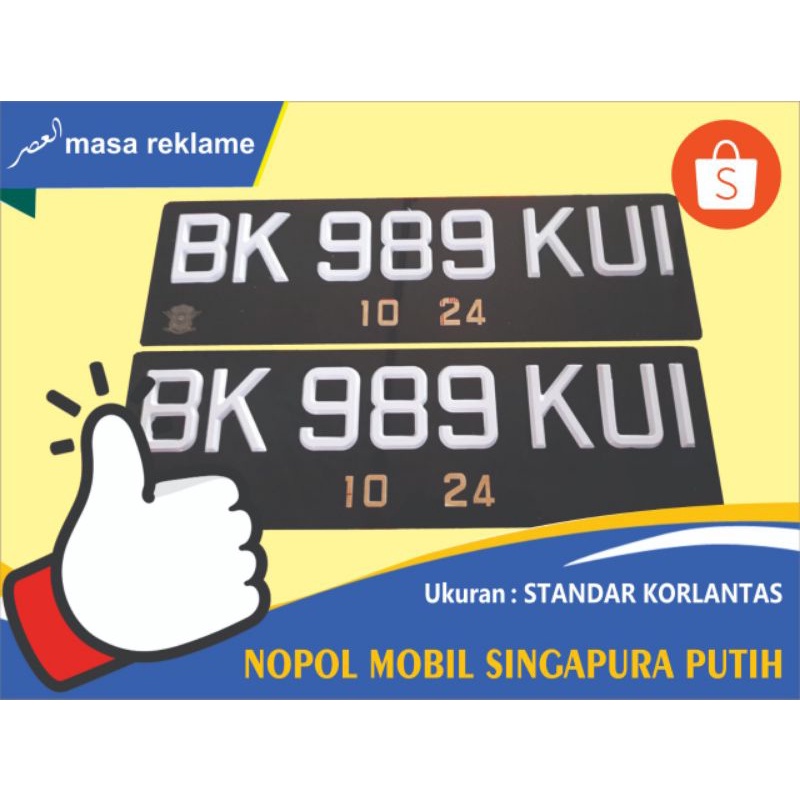 BK Nopol mobil Letter timbul Singapura putih
