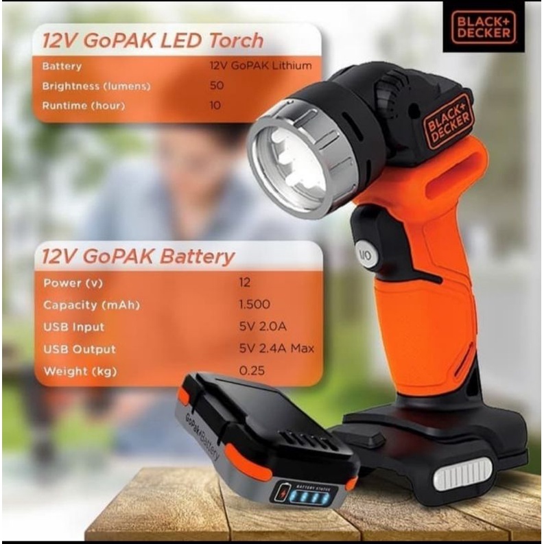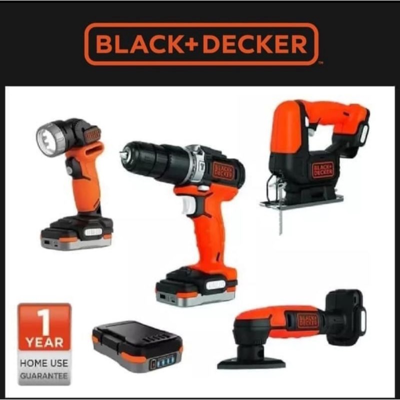 BLACK DECKER perkakas combo kit gopak - bor, gergaji, lampu, amplas black+decker