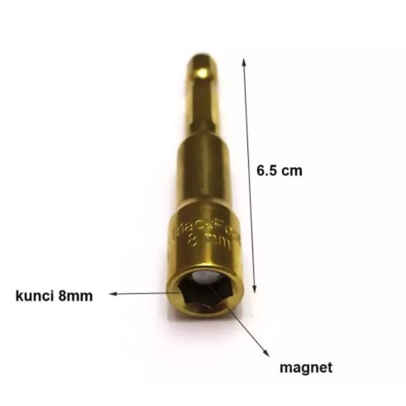 BLACKFOOT Adapter Kunci Sock Drilling Magnetic Nut 8 X 65 mm Konverter Sambungan Baut Driling 8mm Converter Shock Sok Penyambung 8x65 mm