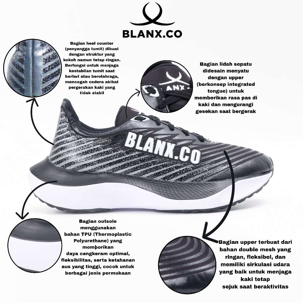 BLANX.CO - One Series Hitam Putih - Sepatu Training | Running Shoes Sepatu Olahraga Pria