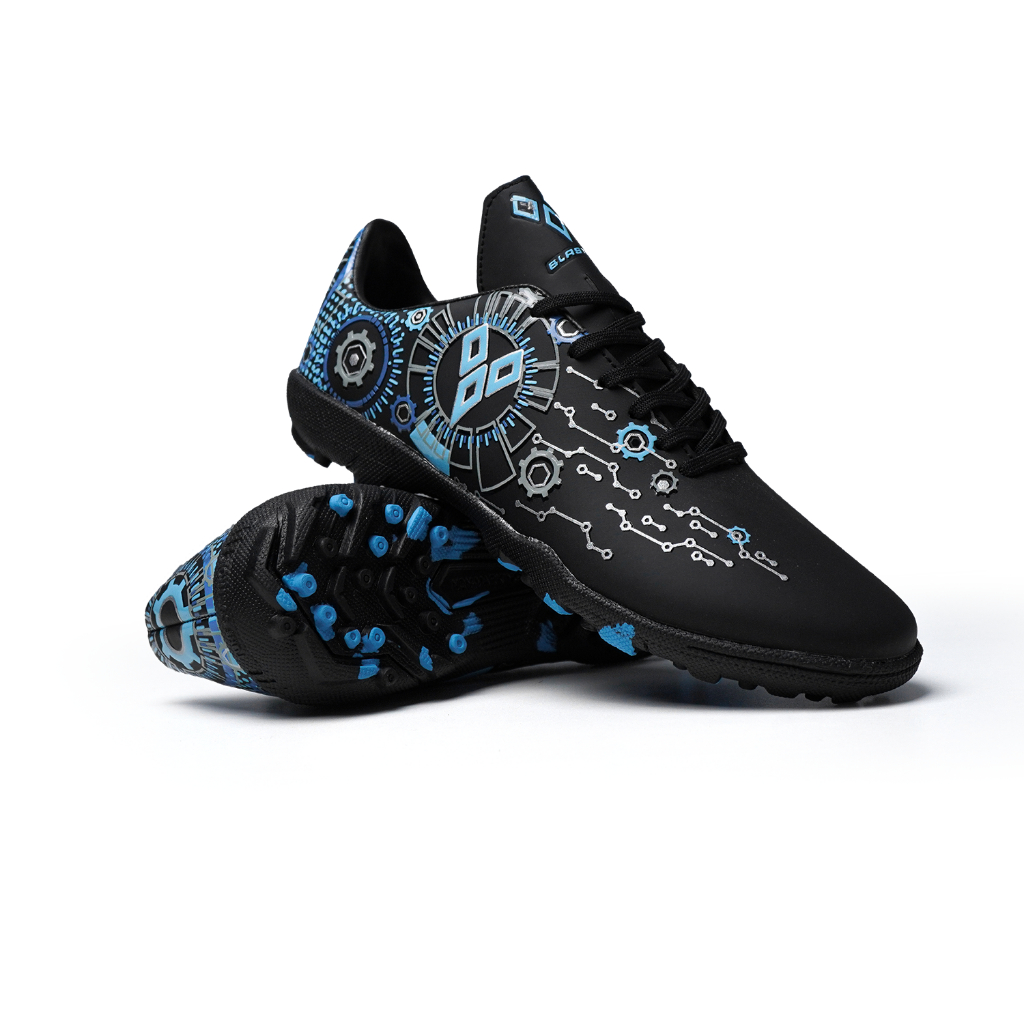 BLASTER - Blitz Hitam Biru Sepatu Futsal Anak Dewasa Mini Soccer Sol Turf Gerigi Olahraga Outdoor