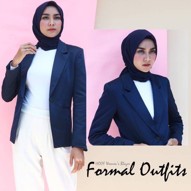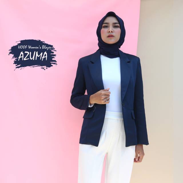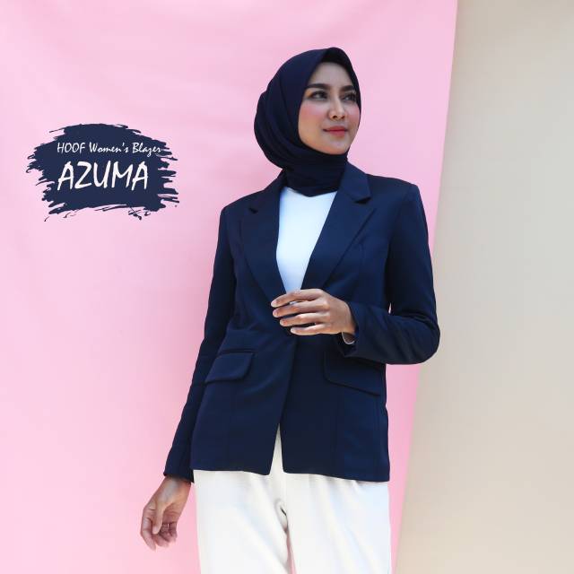 BLAZER WANITA AZZUMA NAVY - Jas Cewek Kantor Formal Kerja Resmi Biru Dongker Karir Berkualitas