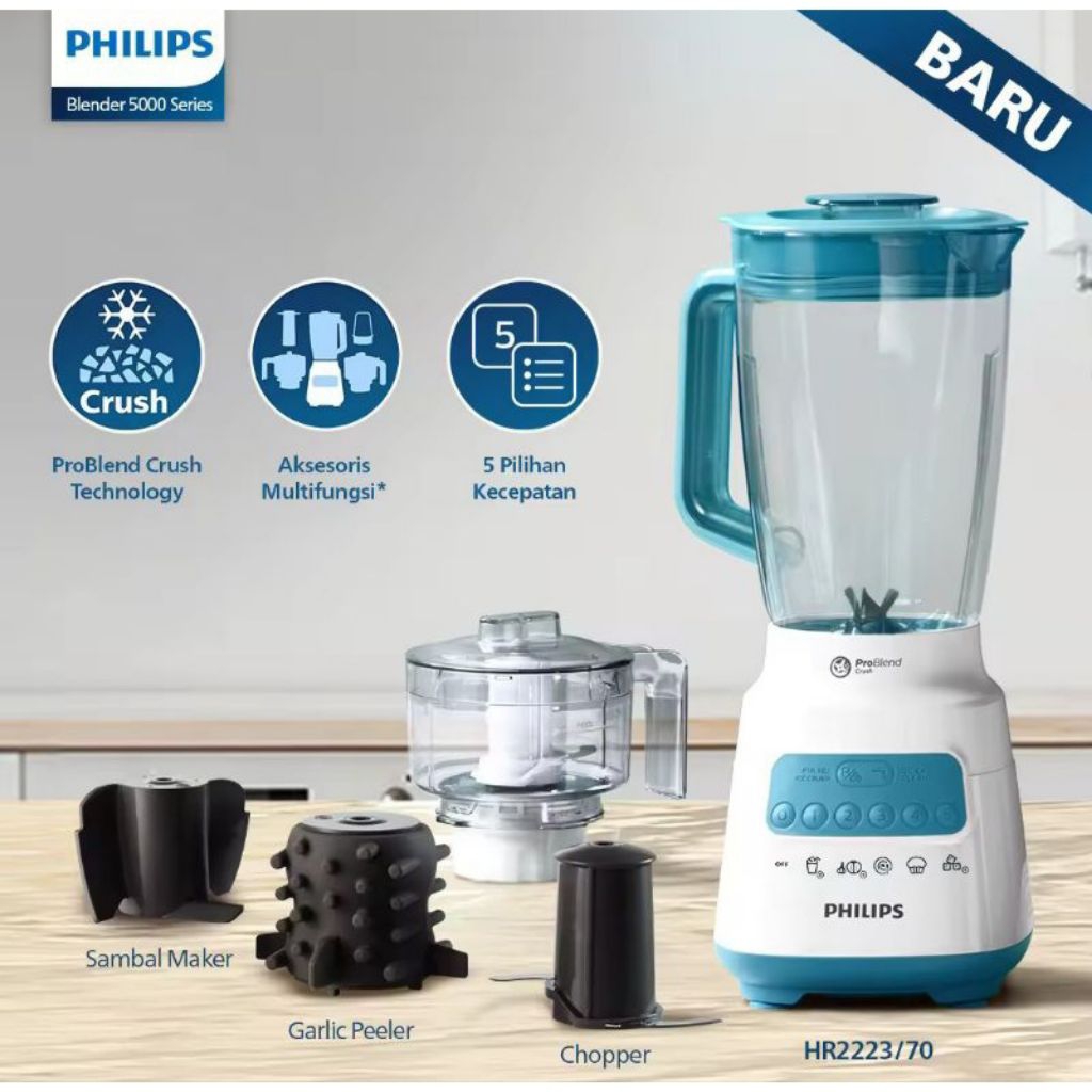 BLENDER PHILIPS HR 2223 / HR2223 / HR2221 / HR 2221 PLASTIK 2L GARANSI RESMI