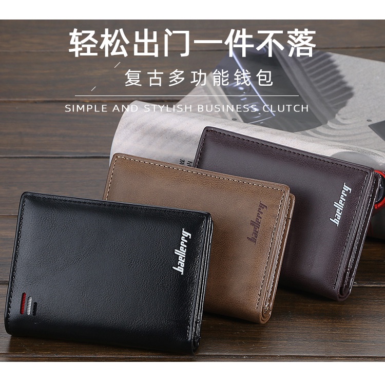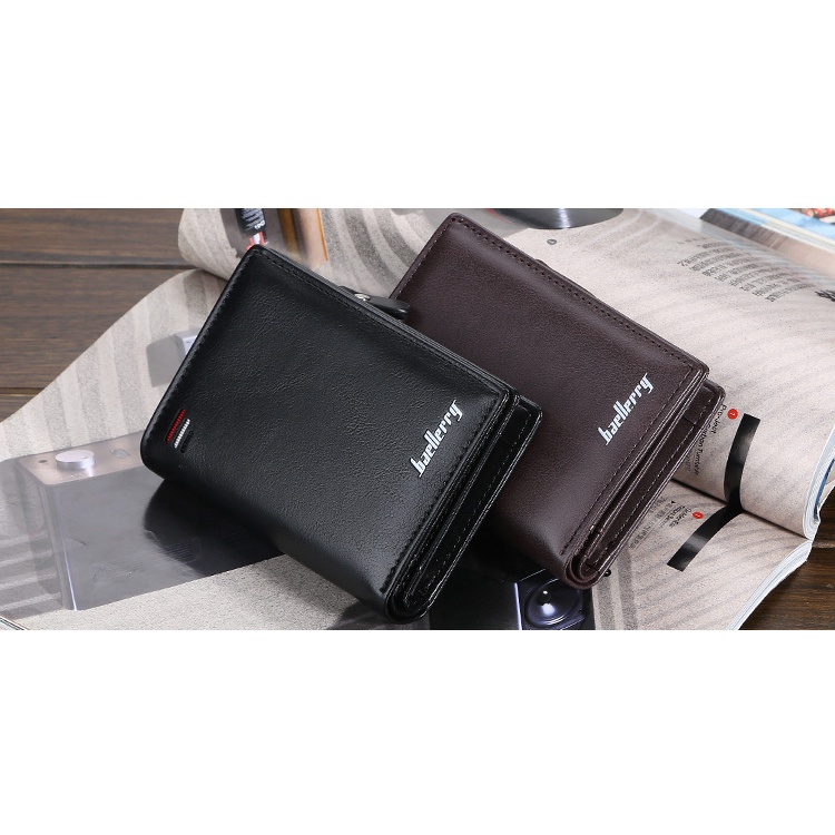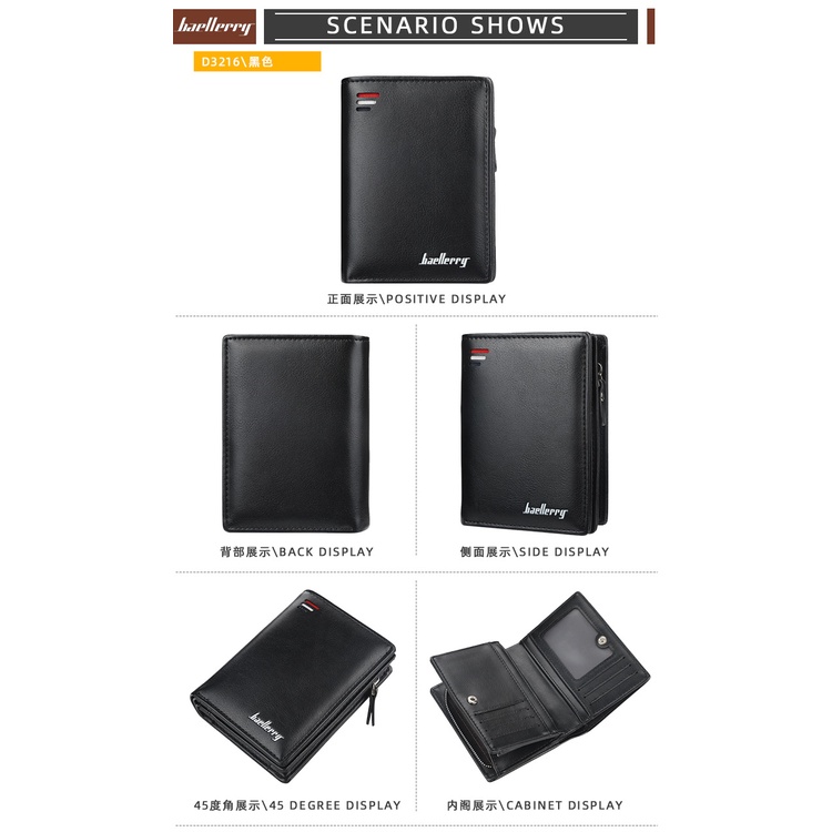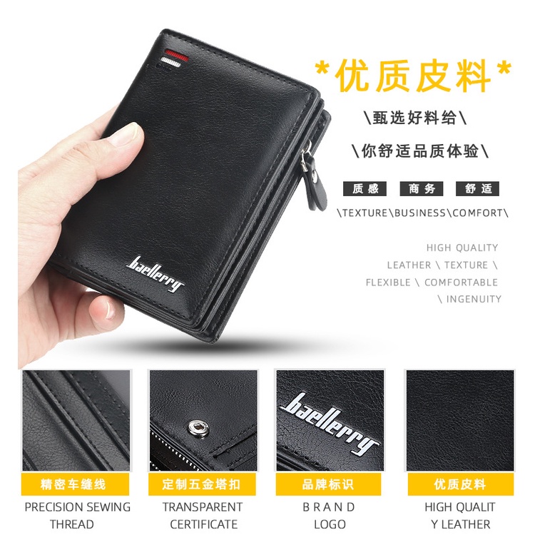 Dompet Lipat Pria Kulit PU Premium Baellerry - Banyak Slot Kartu, Tempat Uang & Zipper Koin | Desain Ringkas & Stylish, Cocok untuk Harian atau Hadiah Elegan - BLK090