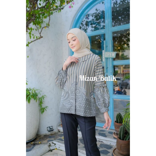 BLOUSE KEMEJA BATIK ATASAN LENGAN PANJANG JUMBO STANDAR/ ATASAN BATIK WANITA KEMEJA FORMAL MODERN LENGAN BALON/ BLUS BATIK KANTORAN MURAH ORIGINAL BY MIZAN BATIK/ BAJU BATIK WANITA KANTORAN