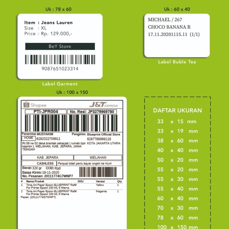 Blueprint TD110D Printer Thermal Bluetooth + USB Barcode Label Resi Online Shop A6