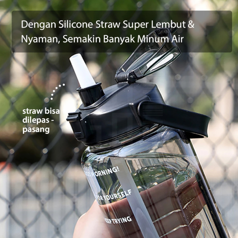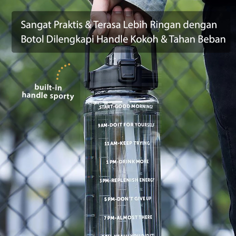 BM - BT24 BOTOL MINUM MOTIVASI 2 LITER FREE STICKER 2D & 3D / BOTOL MINUM VIRAL / BOTOL MINUM BENING / BOTOL MINUM TRANSPARAN / BOTOL MINUM JUMBO 2 LITER / BOTOL MINUM MOTIVASI PENANDA WAKTU TRITAN