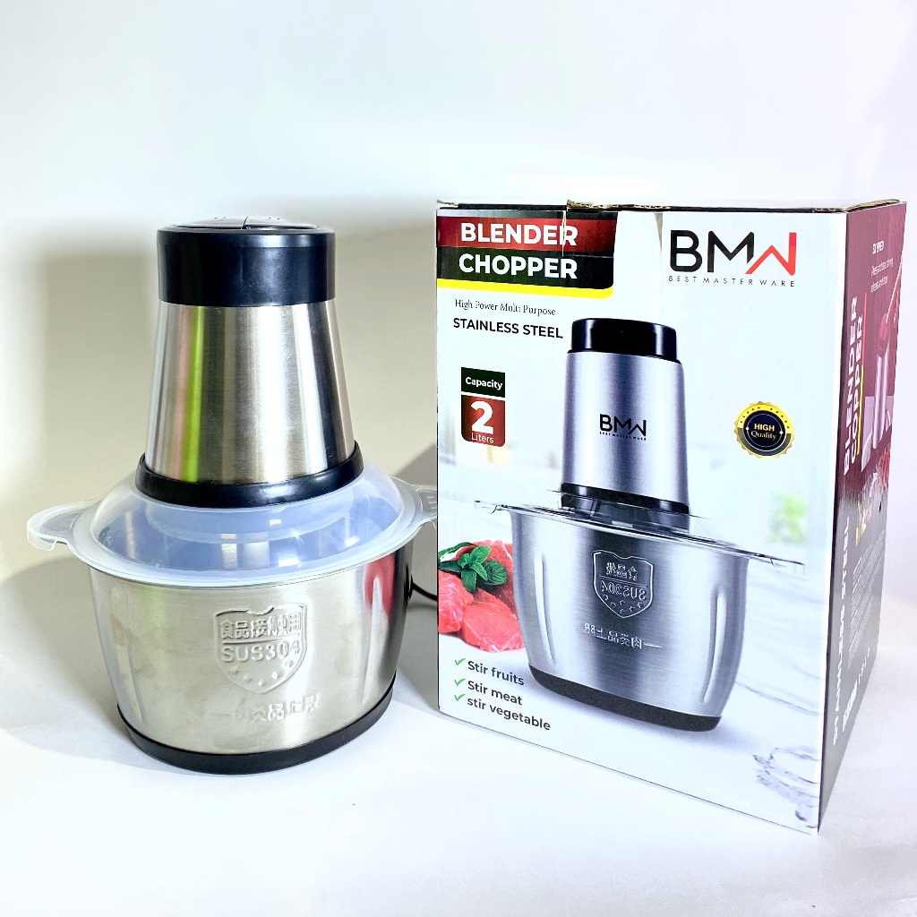 BMW BLENDER CHOPPER STAINLESS STEEL 2L FOOD PROCESSOR PENGHANCUR DAGING SAYUR BUAH