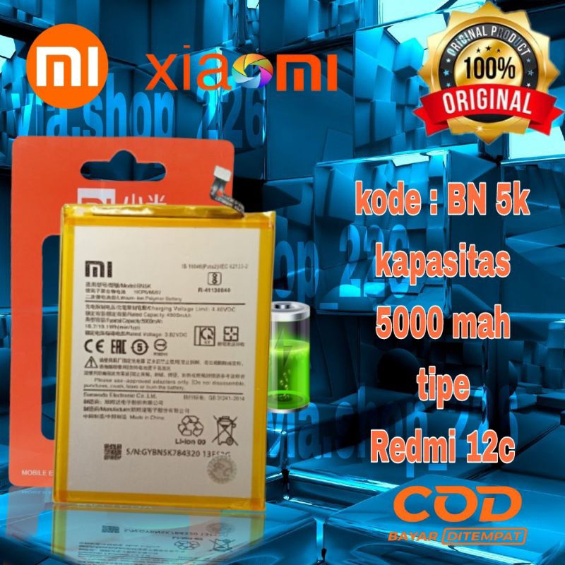 BN 5k baterai Xiaomi 12 c redmi 12c bn5k kapasitas 5000 mah batre batu hp original hendphone