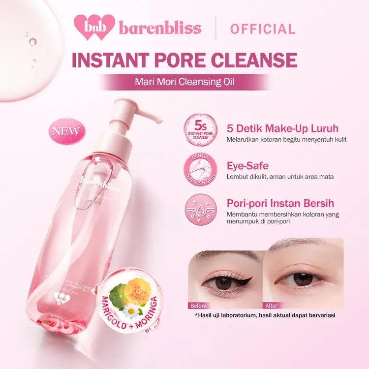 BNB barenbliss Mari Mori Pore Cleansing Oil 160ml Oil To Milk AHA BHA PHA Pore Care Deep Cleanser 10X Nourishment Minyak Pembersih Wajah Non Comedogenic Penghapus Make Up Lembut Tanpa Iritasi for All Skin Types bnb official store