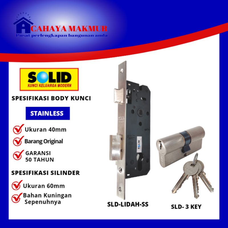 BODY KUNCI MORTISE LOCK KUNCI RUMAH PINTU SET PELOR LIDAH DEKSON SOLID 40MM SILINDER CYLINDER ANAK KUNCI PINTU RUMAH BESAR GESER SET DEKSON SOLID 60MM