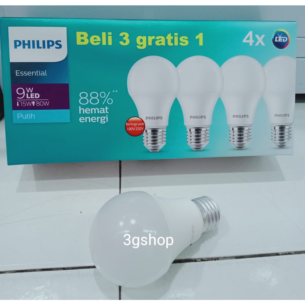 BOLA LED ESSENTIAL 9W REPACK 3+1 PHILIPS