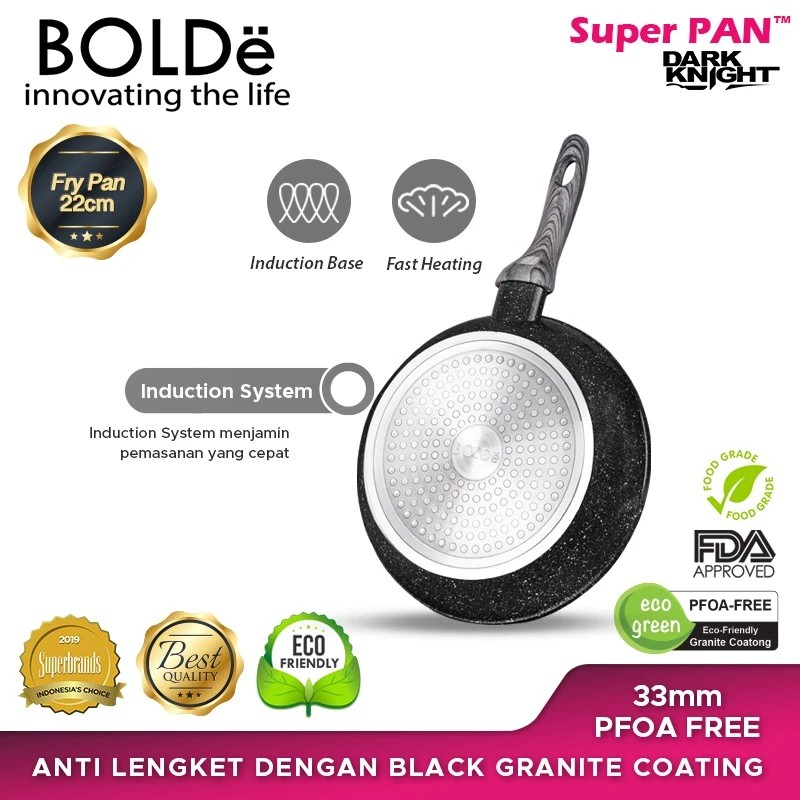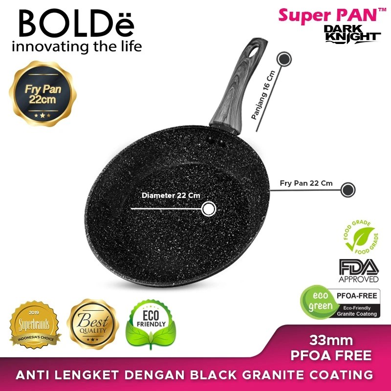 BOLDe Fry Pan 22 CM Granite Coating BLACK DARK KNIGHT Teflon Panci Penggorengan