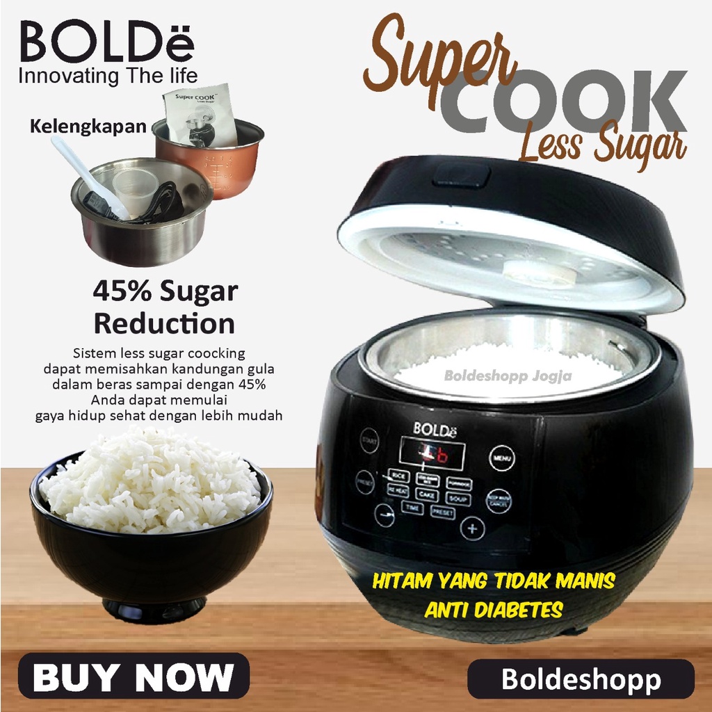 BOLDe Rice Cooker Less Sugar 1 Liter Digital | Rice Cooker Less Sugar Low Carbo | Rice Cooker Digital 1 Liter