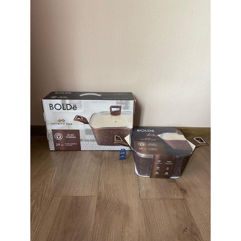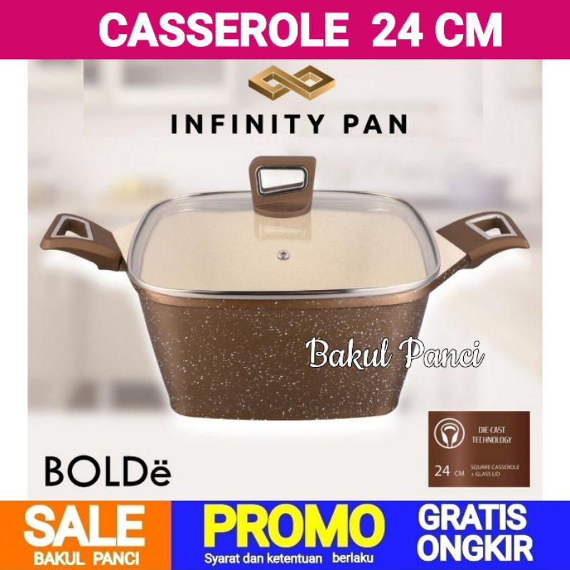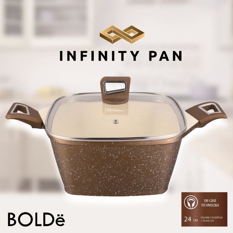 BOLDe SUPER PAN - INFINITY PAN CASSEROLE 24CM GOLD + LID - PANCI PREMIUM DIE CAST GRANITE COATING