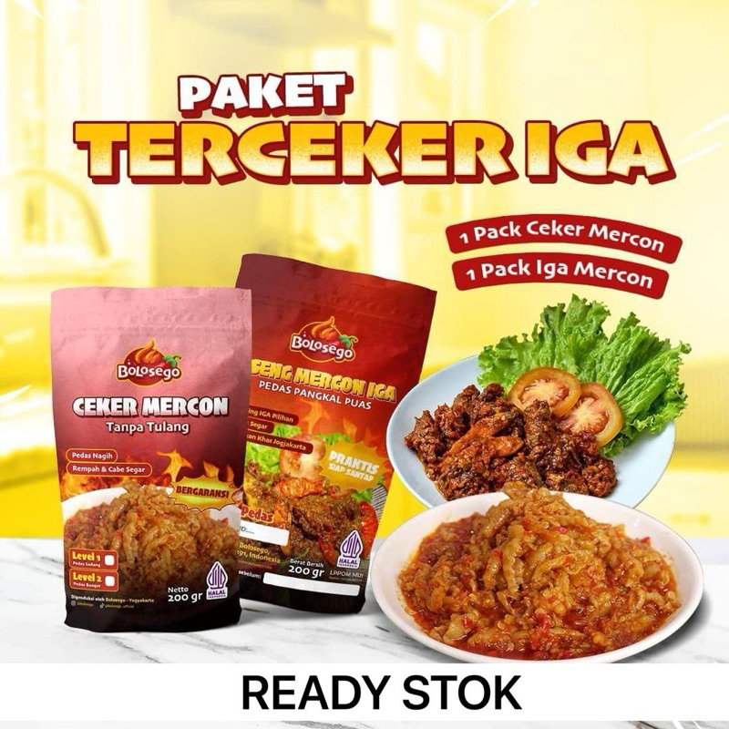 BOLOSEGO PAKET TERCEKER IGA - Oseng Mercon Daging Iga Sapi + Ceker Mercon - Halal dan Bergaransi