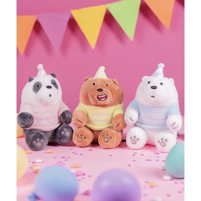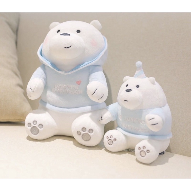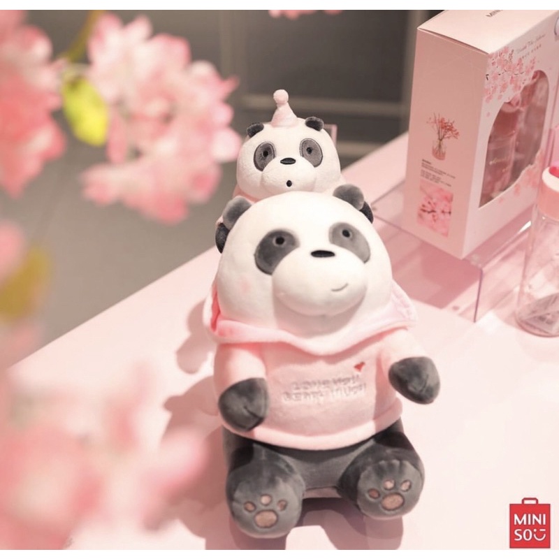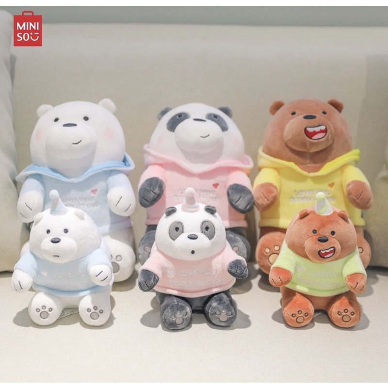 BONEKA MINISO SITTING PLUSH TOY WE BARE BEARS VACATION HOODIE GRIZZ PANDA ICE BEAR
