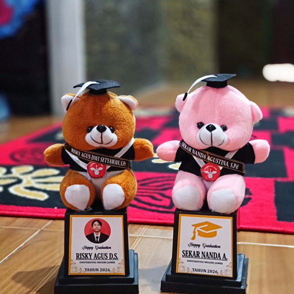 BONEKA WISUDA PIALA SOUVENIR/ BONEKA PIALA WISUDA REQUEST/BONEKA BEAR WISUDA/Boneka tatakan piala souvenir