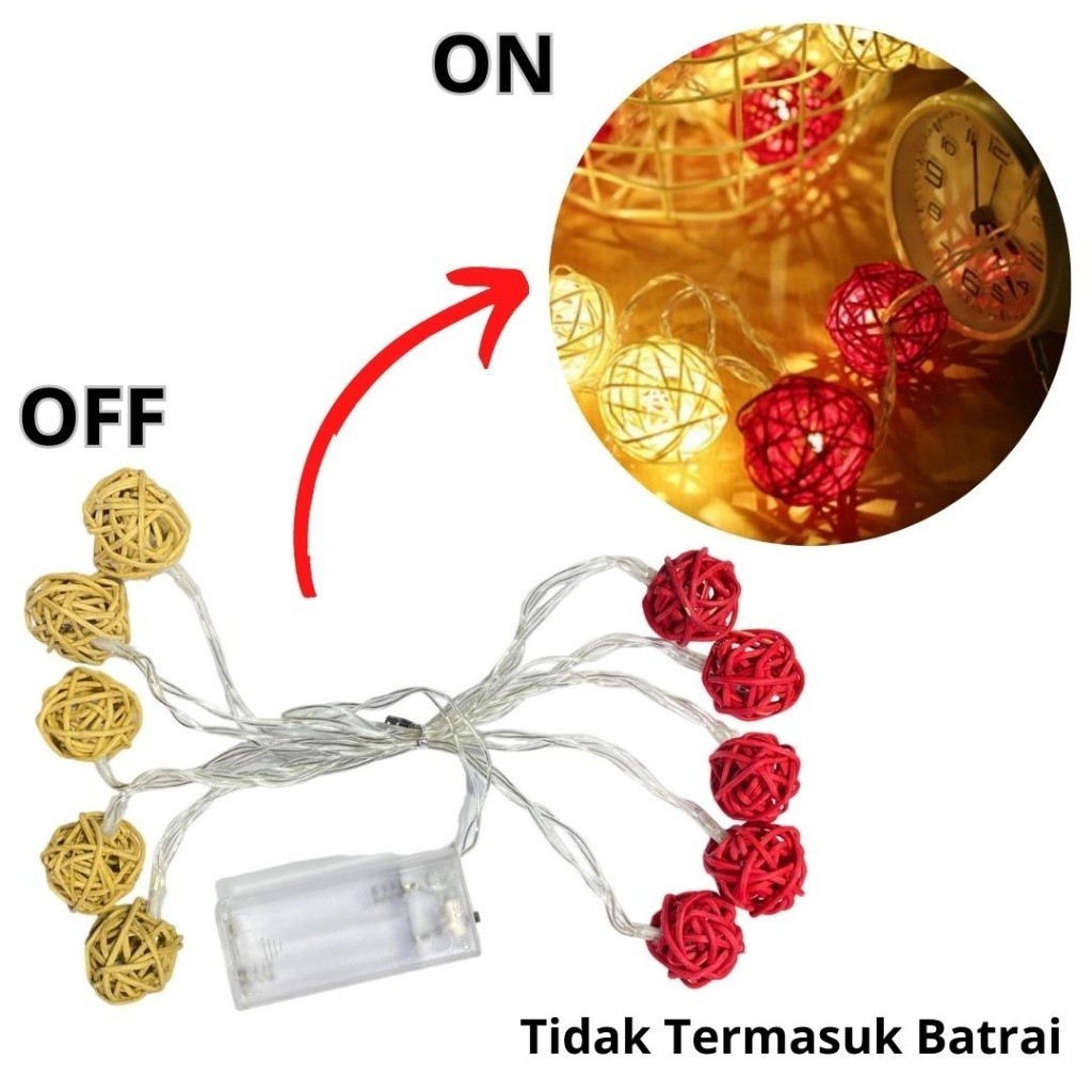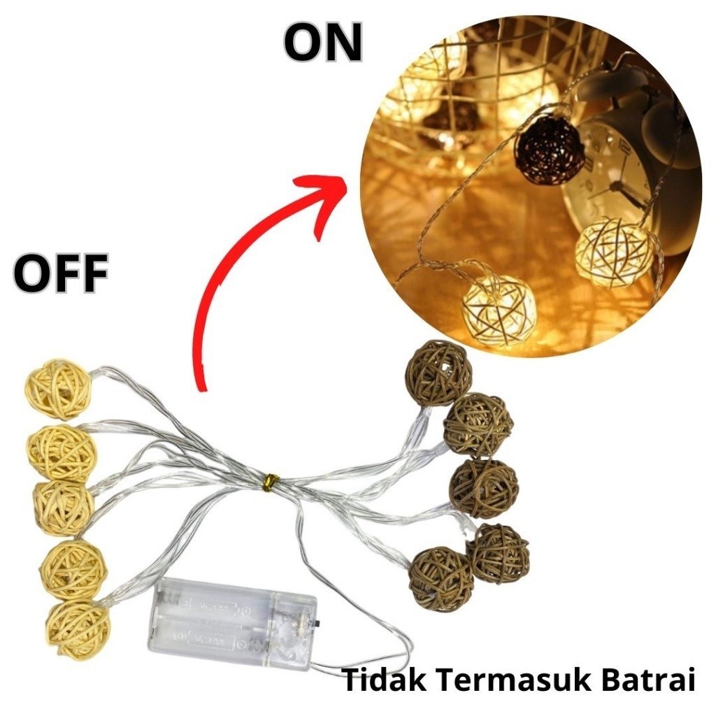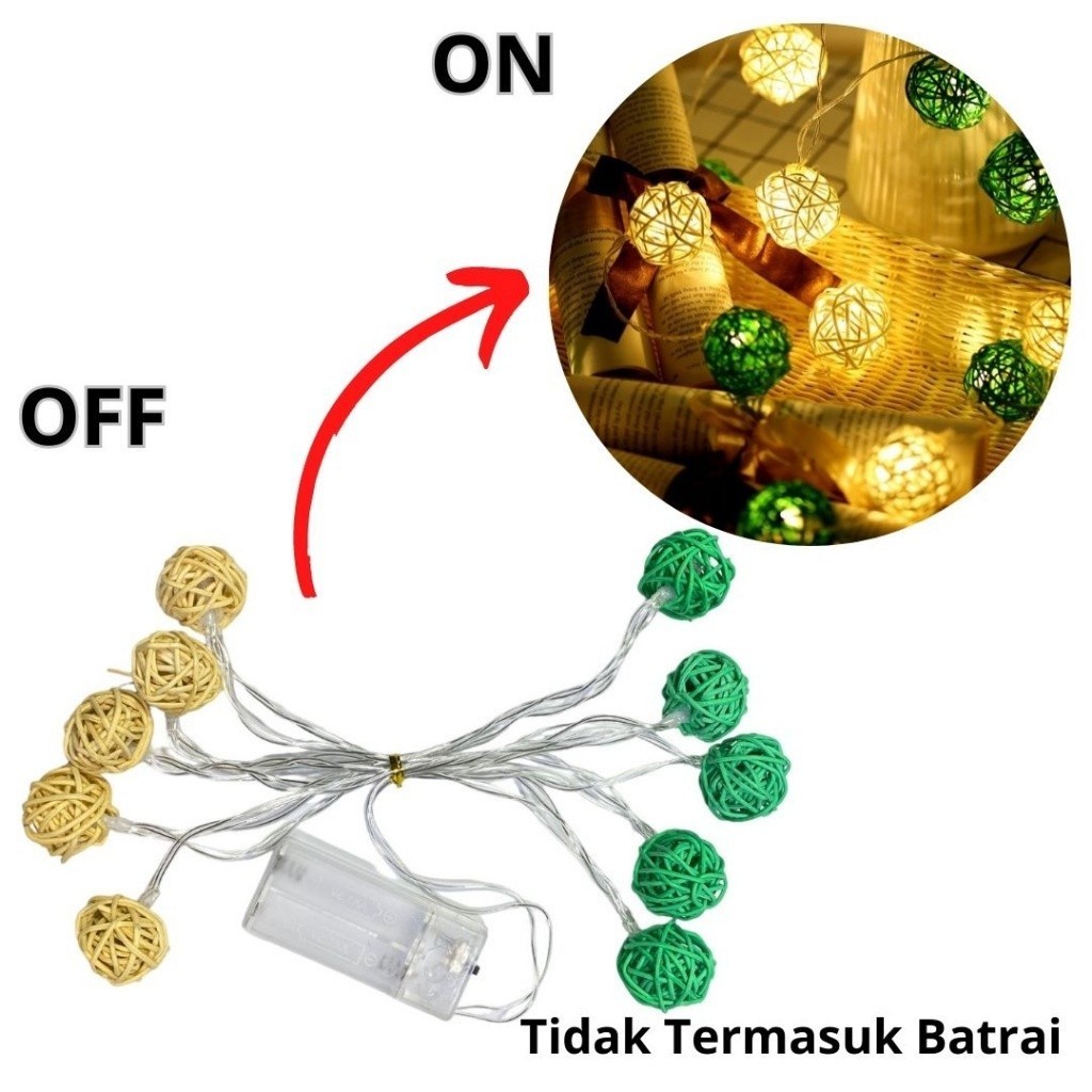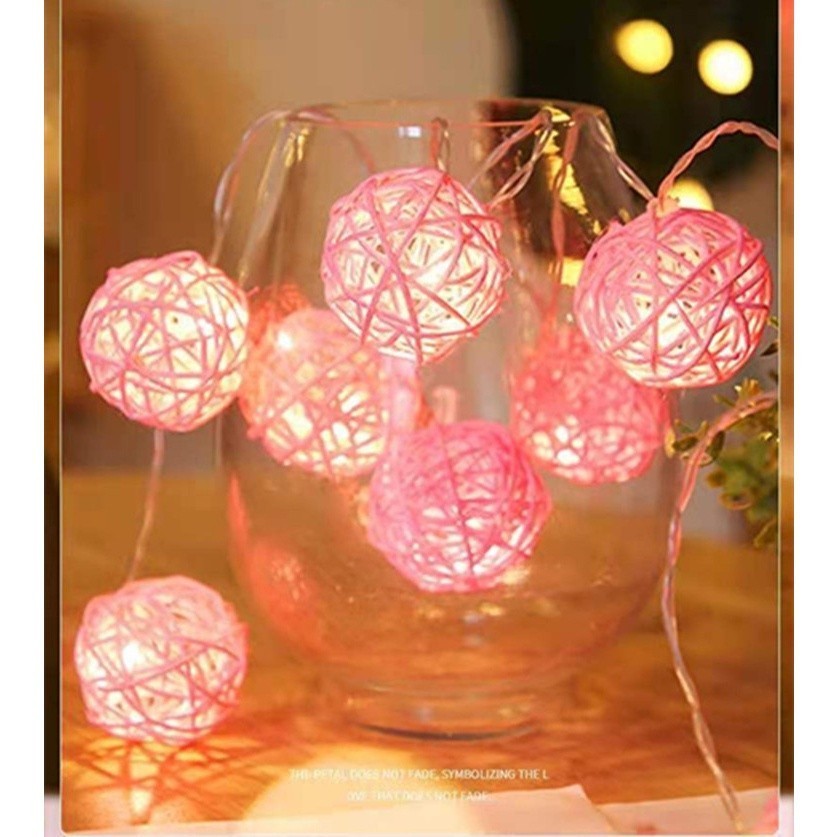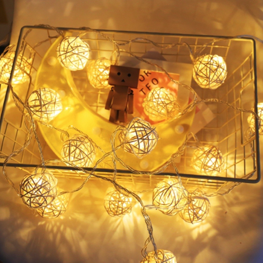 BORES Lampu Hias Bulat Panjang 2 Meter Tumbler Lampu Bola Rotan 2Mtr Tali String Bola Takraw Hias Fairy Lampu Hias Kamar Tidur Romantis Tata Letak Lampu Bola Gantung Murah