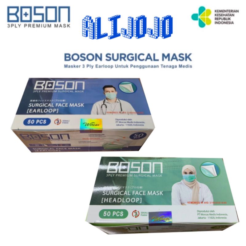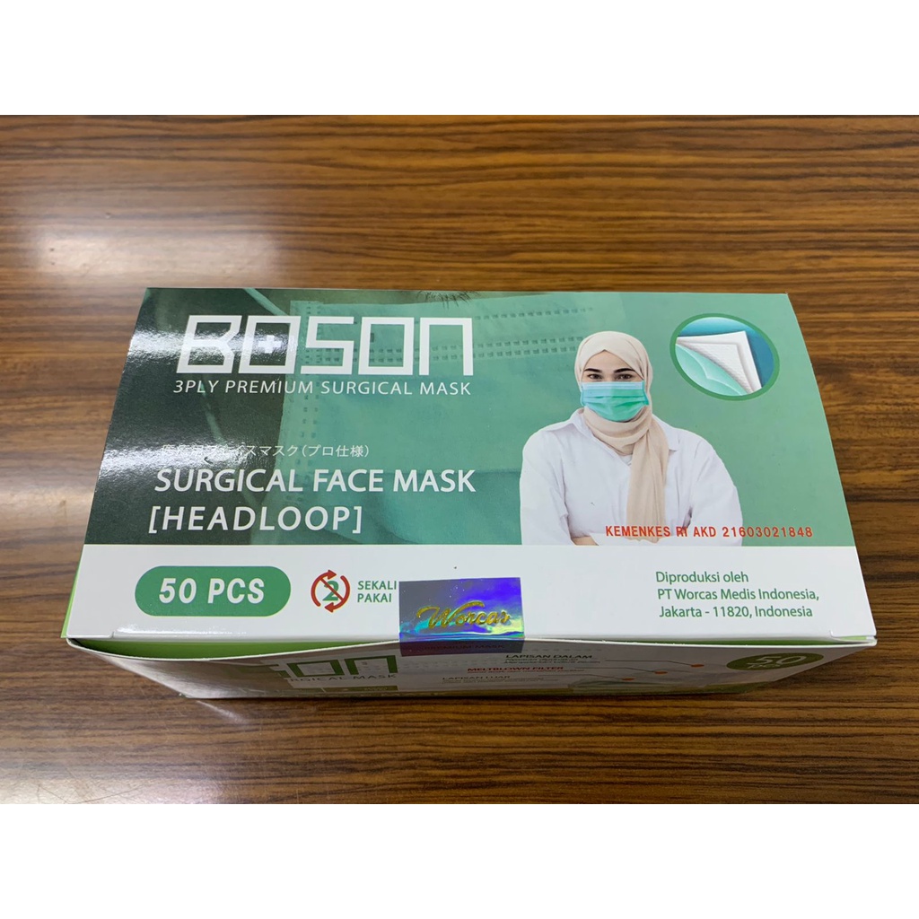 BOSON Surgical Mask Earloop 3 Ply Masker Medis Isi 50 Pcs - Disposable