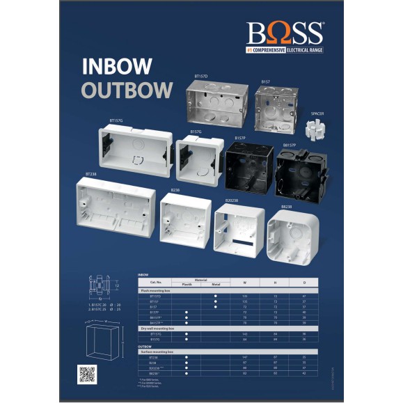 BOSS B157G - 1 Gang Flush Mounting Plastic Box (Dry Wall)