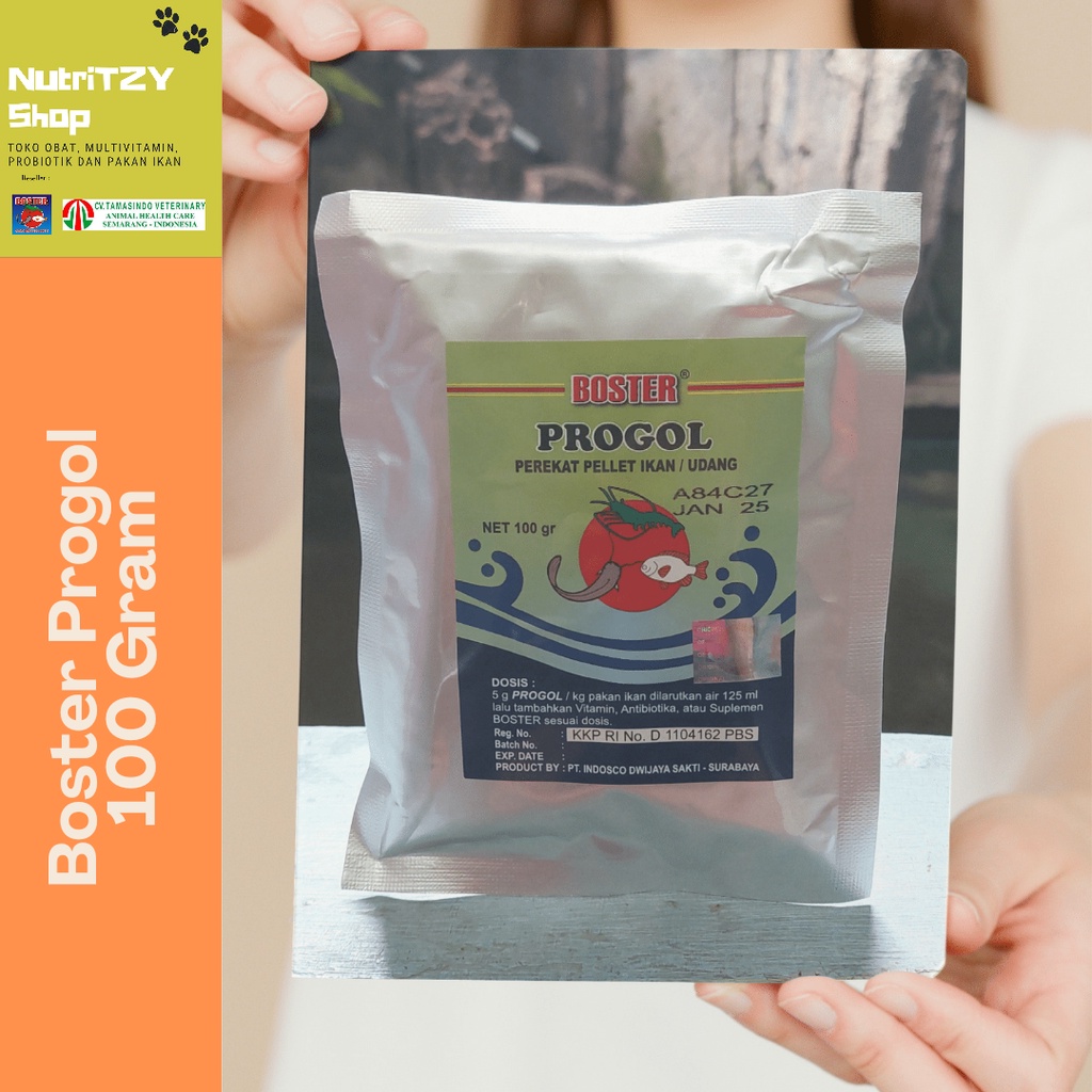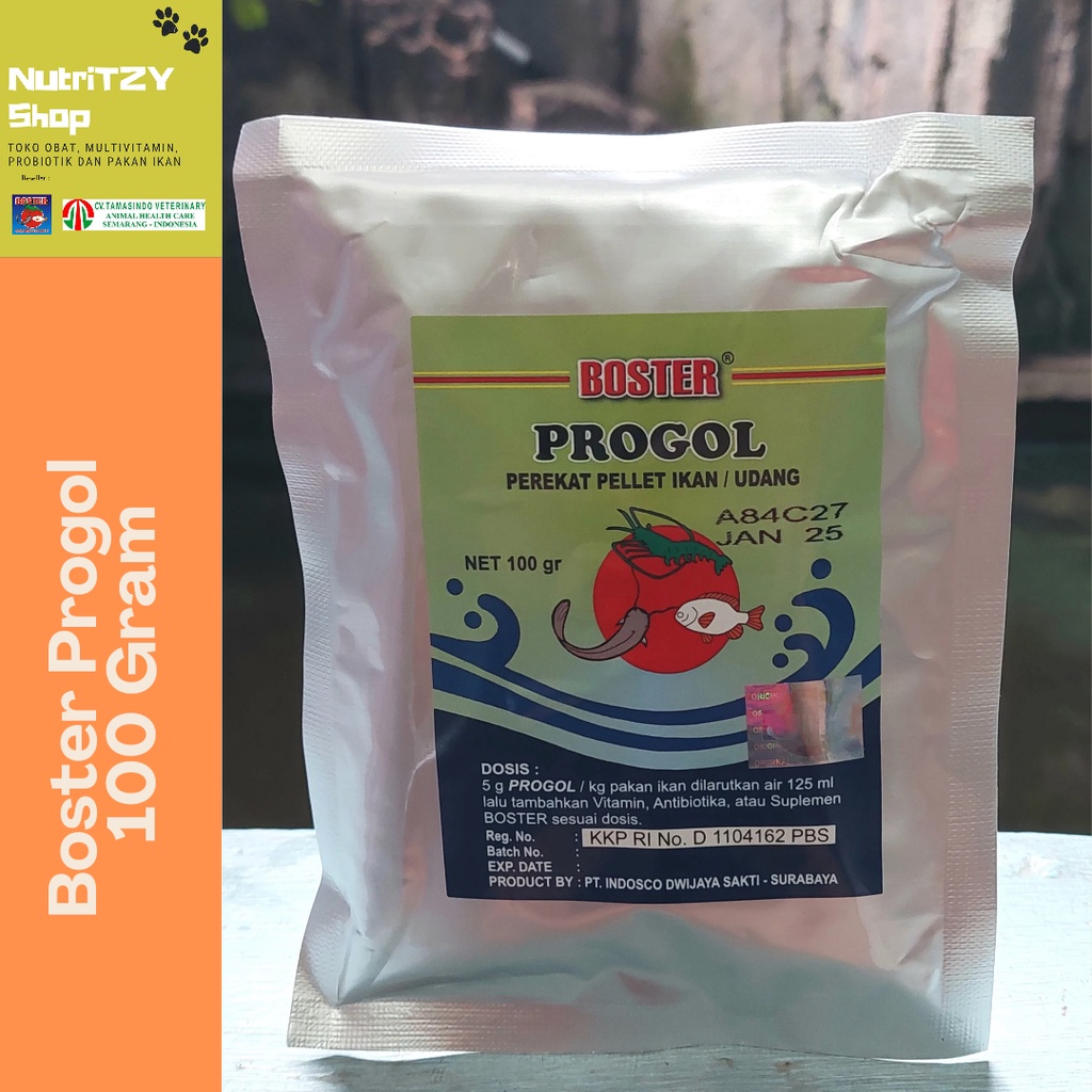 BOSTER PROGOL Uk. 100gr Perekat Pakan Ikan & Udang + BUBBLEWRAP / KARDUS