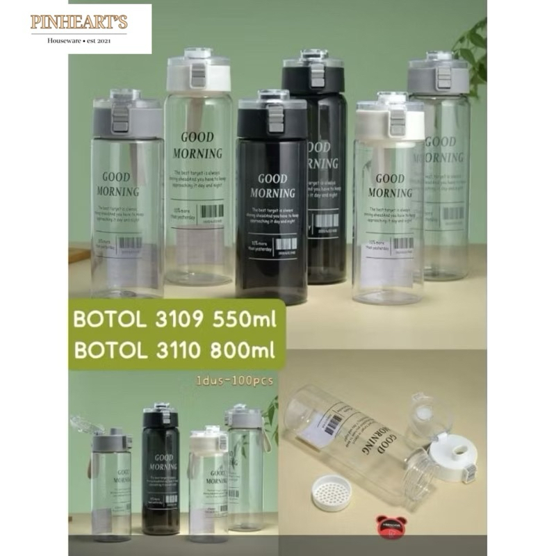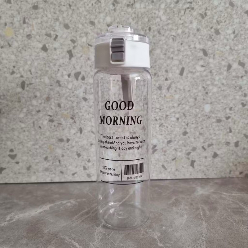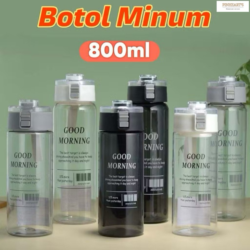 BOTOL AIR MINUM AESTHETIC GOOD MORNING WATER BOTTLE TERMOS BOTOL BENING TRANSPARAN 800ML / BOTOL AIR MINUM GOOD MORNING