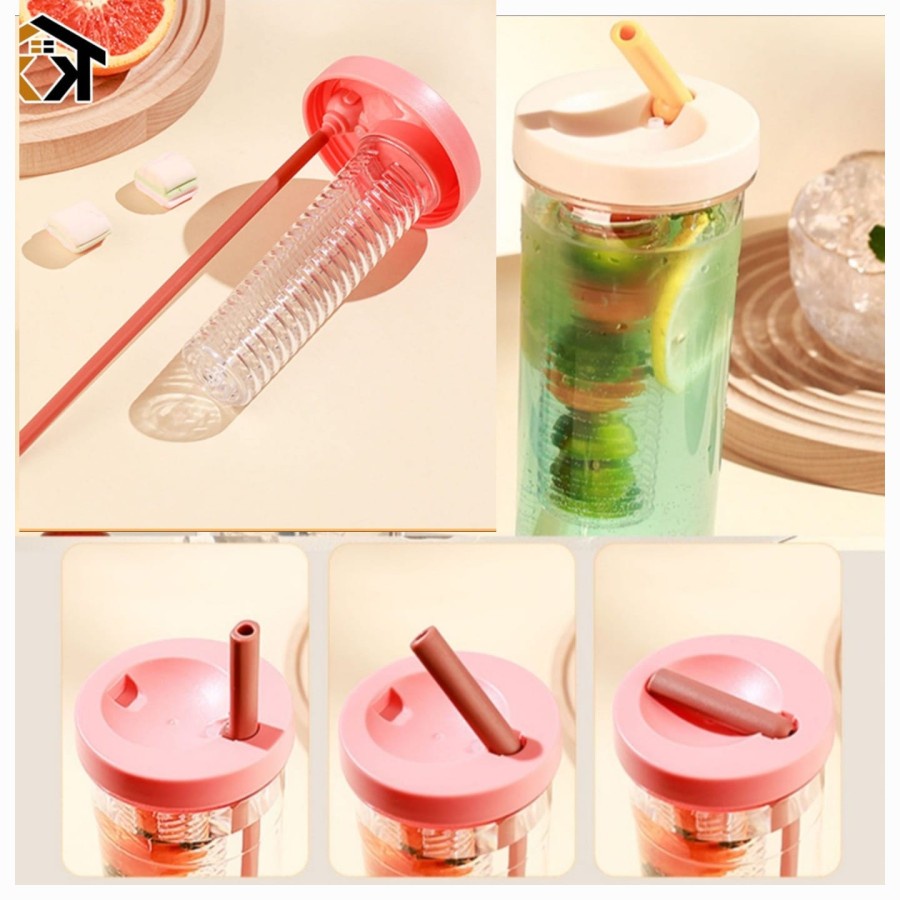 BOTOL INFUSE JUICE STRAW 700 ML AIR MINUM TUMBLR TRANSPARANT / Perlengkapan Botol Minum Infused Water Sedotan Lipat Botol Minum 600L Botol Minum Bening Infused Water Botol Minum Sedotan Lipat Botol Minum Buah 700ml