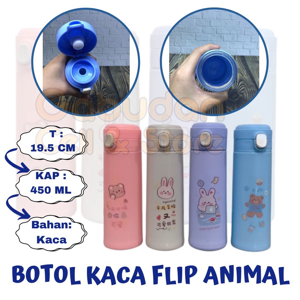 BOTOL KACA FLIP ANIMAL 450ML