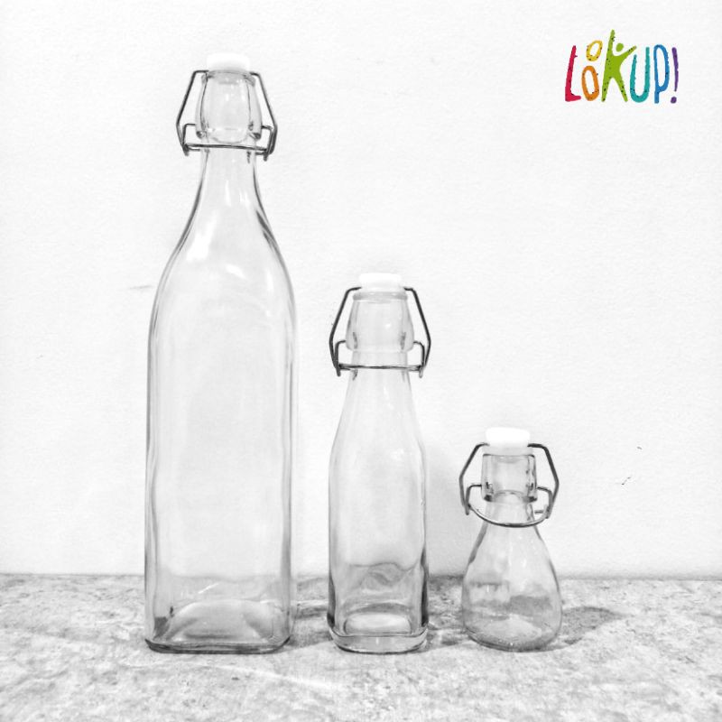 BOTOL KACA JEPIT / SWING BOTTLE white/Glass Bottle /swing Bottle Botol Kaca semi-borosilicate /Minuman Kopi/Susu/Juice/Teh/Jus/Minyak/Oil