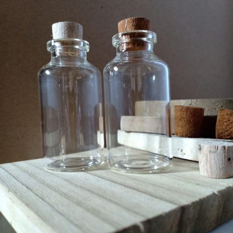 BOTOL KACA TUTUP KAYU / Perlengkapan Hampers / Botol Kaca Mini
