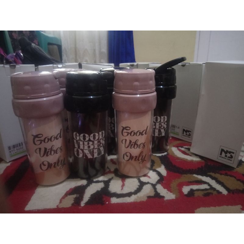 BOTOL MINUM 350 ML BOTOL MINUM VIRAL BOTOL MINUM KEKINIAN BOTOL MINUM GOOD VIBES ONLY BOTOL AIR HANGAT BOTOL MINUM KOPI