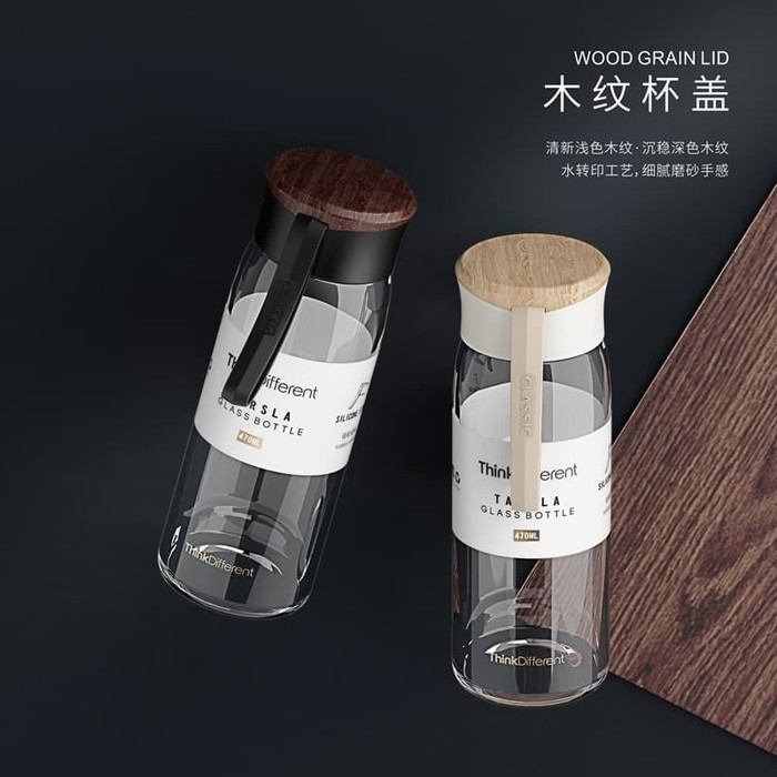 BOTOL MINUM KACA DESIGN MINIMALIS KAYU / GLASSS BOTTLE WOOD 470ml - U1255