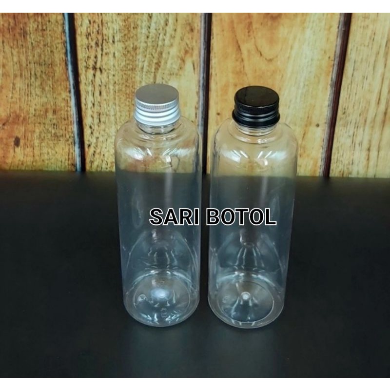 BOTOL PLASTIK 250ML TUTUP ULIR ALMUNIUM NECK 24 HITAM SILVER/BOTOL MINUM TUTUP ULIR