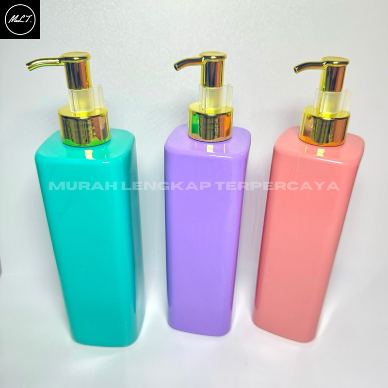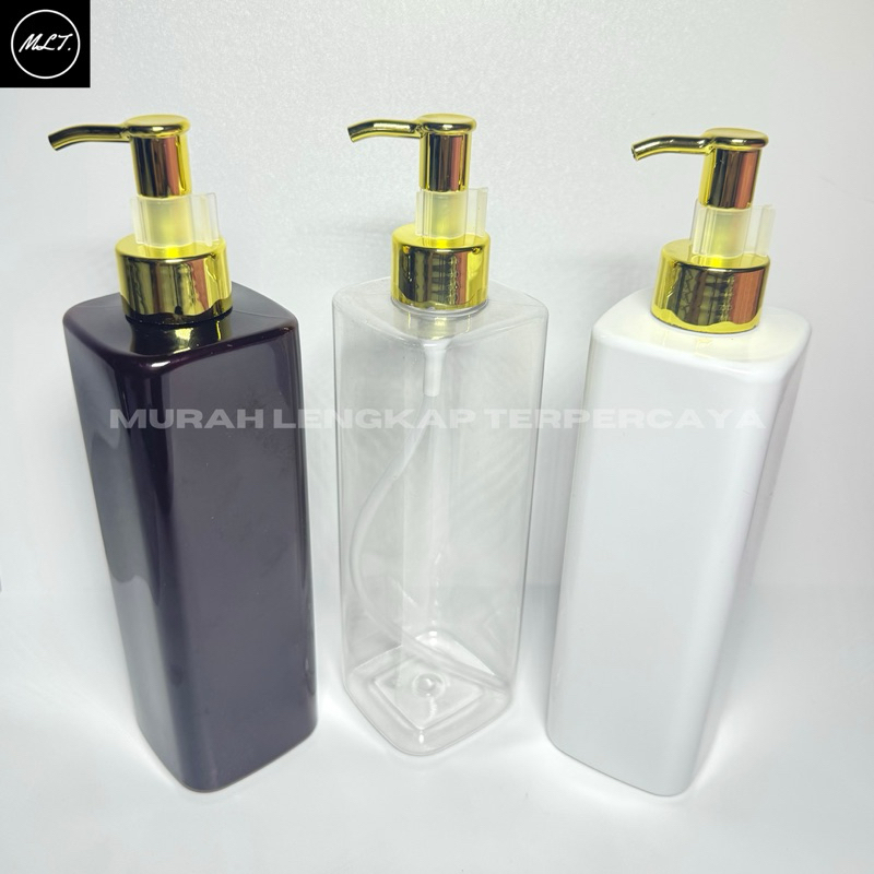 BOTOL PUMP CLIP OIL GOLD 500ML MODEL KOTAK / BOTOL PET 500ML KOTAK TUTUP PUMP CLIP OIL GOLD 500 ML PLASTIK HOLI PINK UNGU HIJAU COKLAT PUTUH HITAM CLEAR
