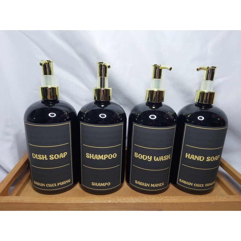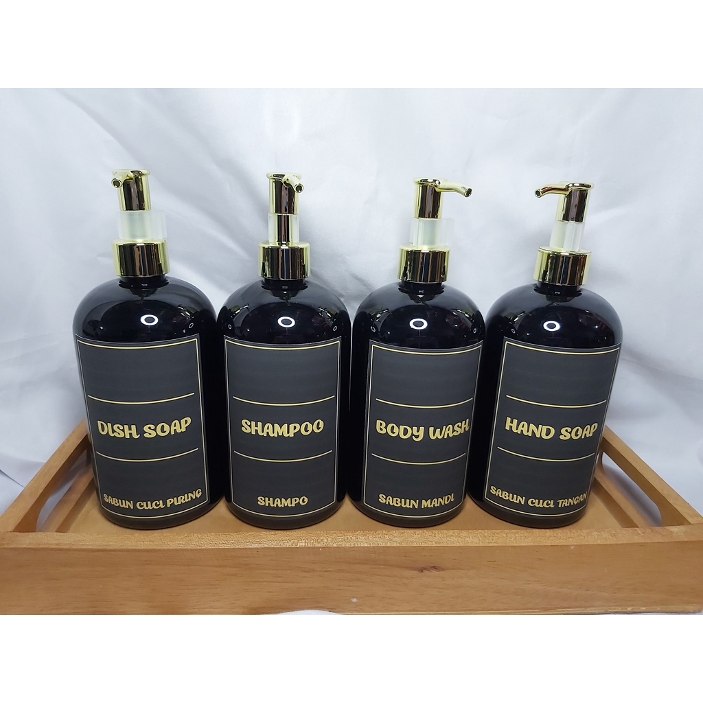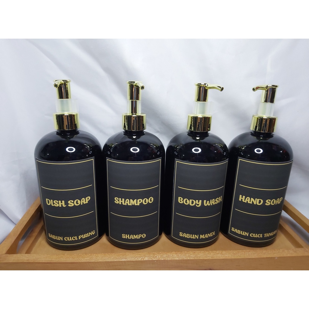 BOTOL SABUN REFIL PREMIUM AESTHETIC/BOTOL HITAM TUTUP GOLD/BOTOL PUMP 500ML/TEMPAT SABUN CAIR