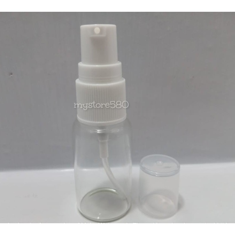 BOTOL SERUM KACA BENING 20 ML TUTUP PUTIH / BOTOL SERUM PUMP KACA 20 ML / BOTOL SERUM KACA