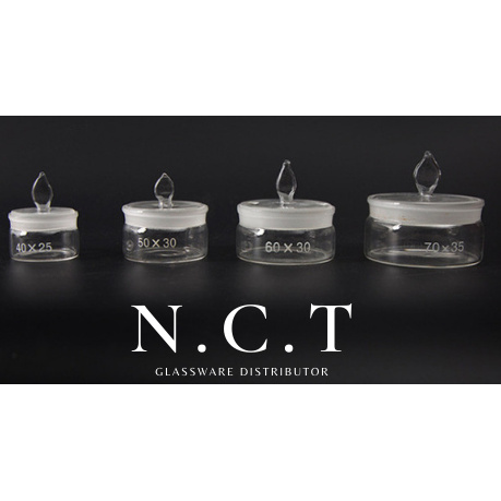 Botol Timbang Kaca Flat Shape Weighing Bottle Laboratorium Anti Reagen Ukuran 25x25 40x25 50x30 60x30 70x35 70x40 Wadah Timbang Sampel Serbuk Granul dan Bahan Uji untuk Lab Kimia