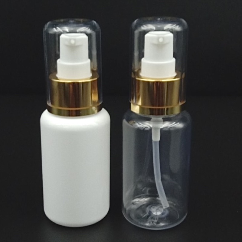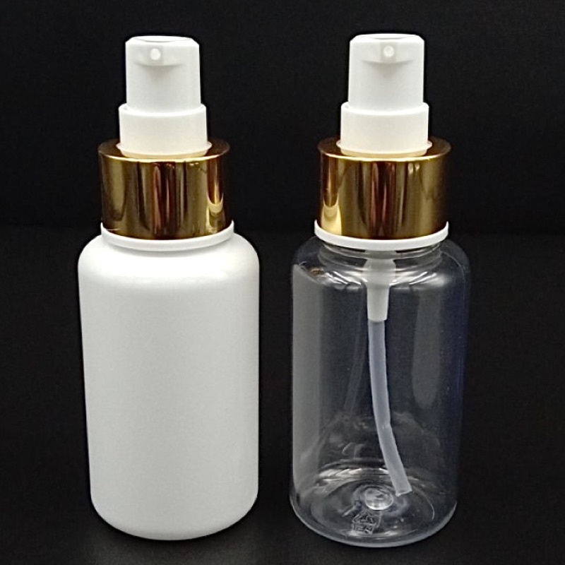 BOTOL TREATMENT 60ML PUMP GOLD FULCCAP / BOTOL TUBULAR 60 ML PUMP TREATMENT GOLD BOTOL PET 60ML NATURAL PUTIH