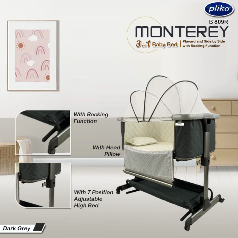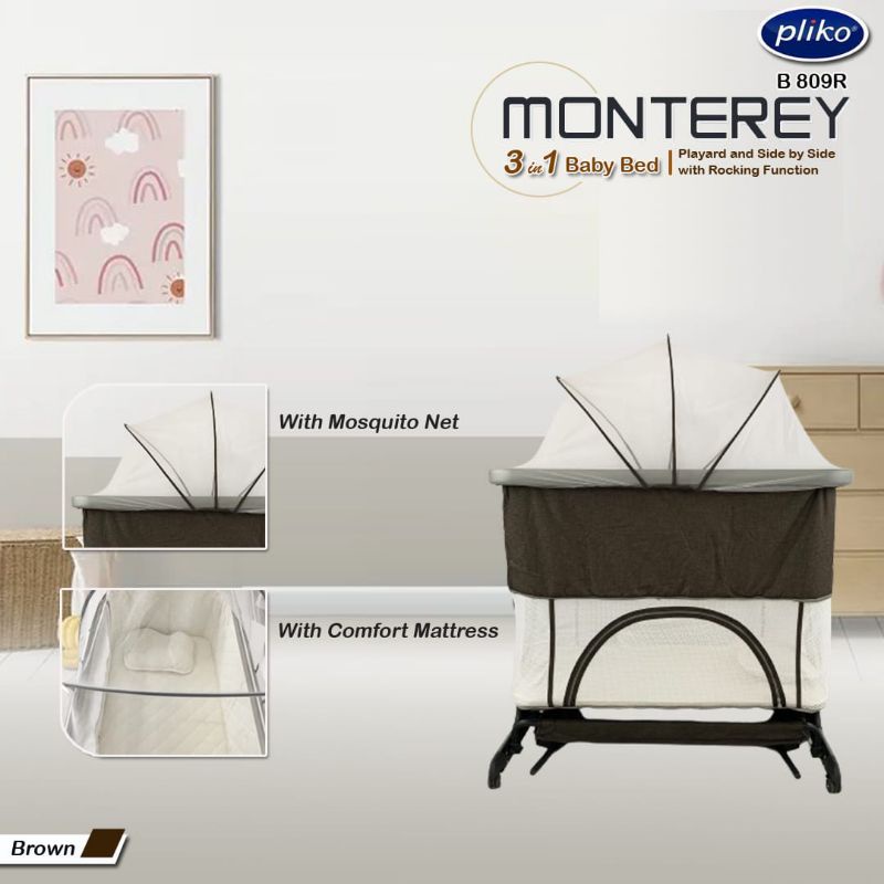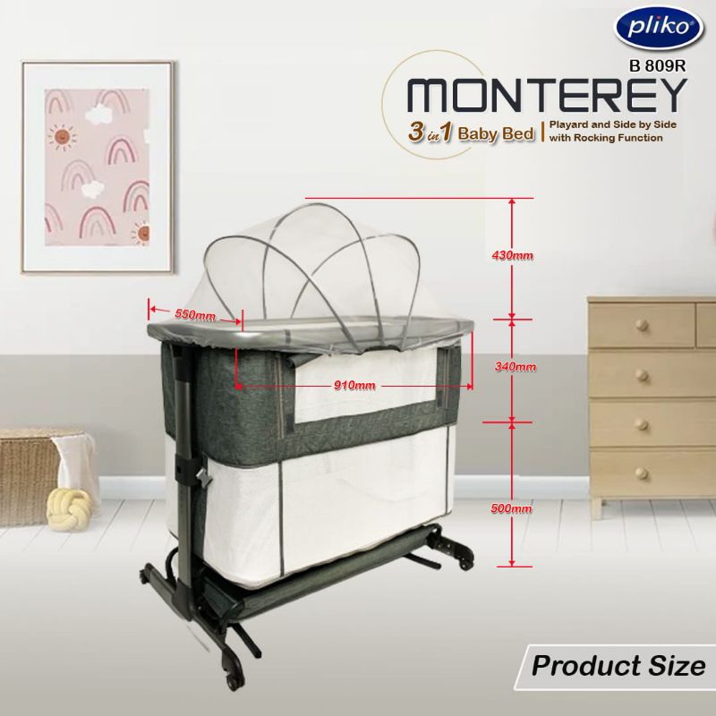 BOX BAYI PLIKO MONTEREY 3 in 1 BABY BED B 809 R | BOX BAYI PLAYYARD AND SIDE BY SIDE WITH ROCKING FUNCTION | SET KELAMBU BAYI | AYUNAN BAYI | KASUR BAYI | KADO BAYI | PERLENGKAPAN BAYI BARU LAHIR