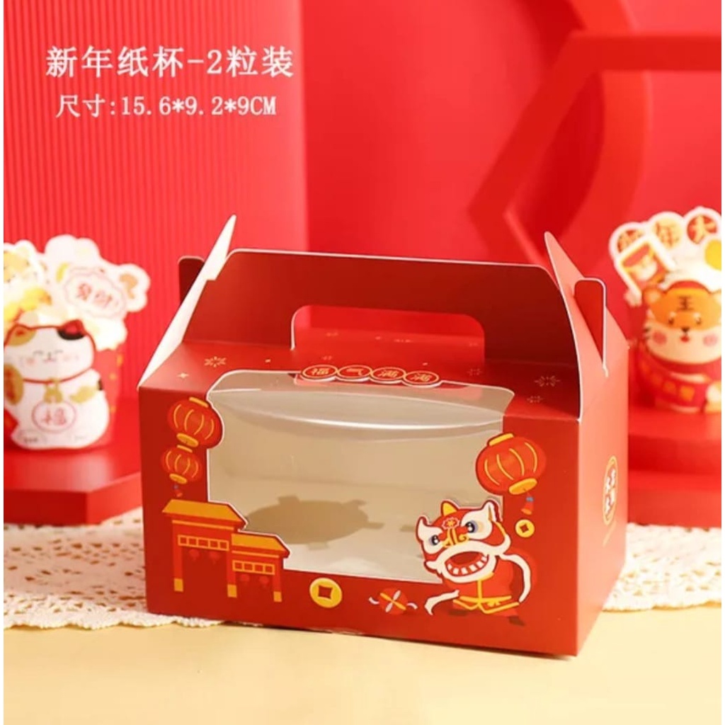 BOX CUPCAKE Kotak Dus Box Kue Cupcake CNY Hampers/Packaging Muffin Edisi Imlek