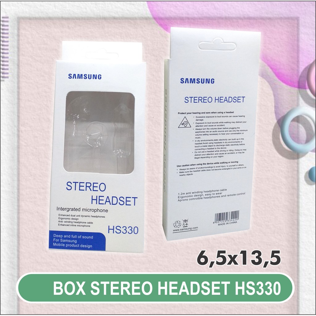 BOX / KOTAK / DUS PACKING STEREO HEADSET BRAND SAMSUNG ( TERIMA CUSTOM PACKAGING )