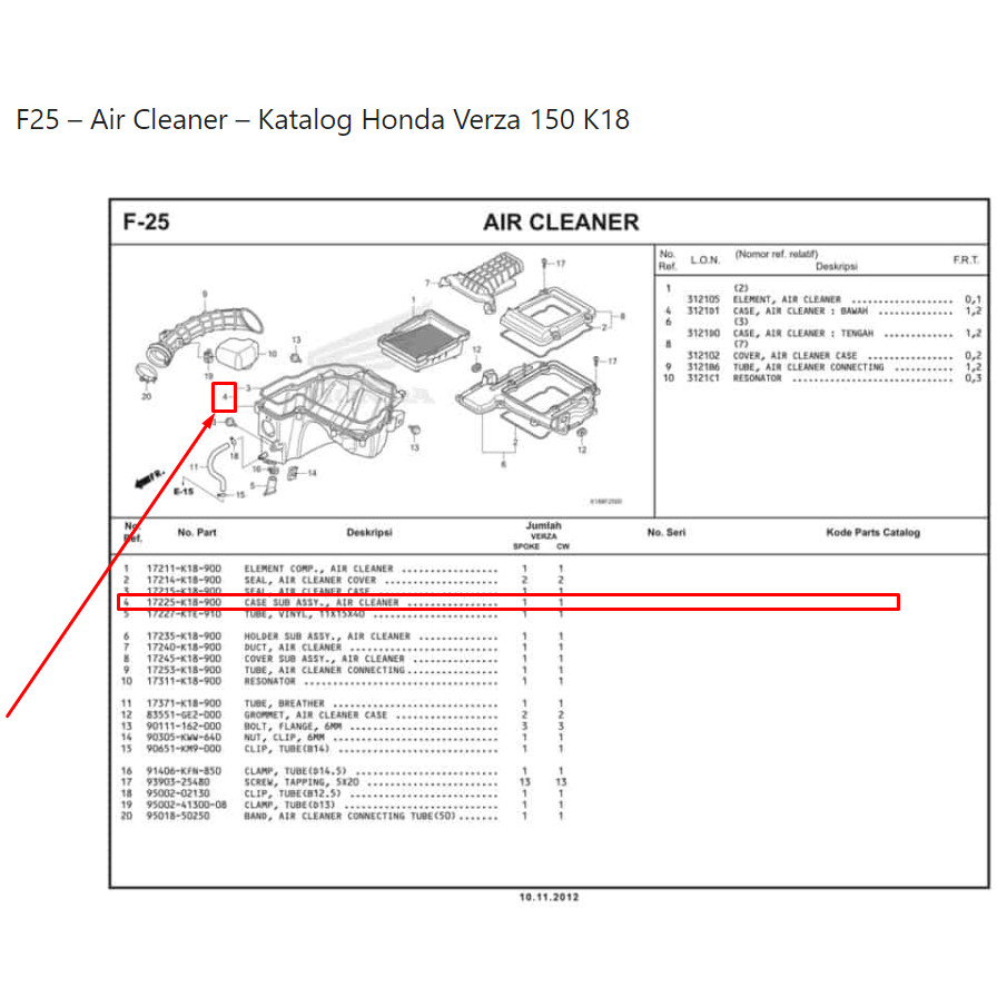 BOX RUMAH FILTER SARINGAN HAWA UDARA CB150 VERZA VERZA 150 HONDA 17225-K18-900 ORIGINAL