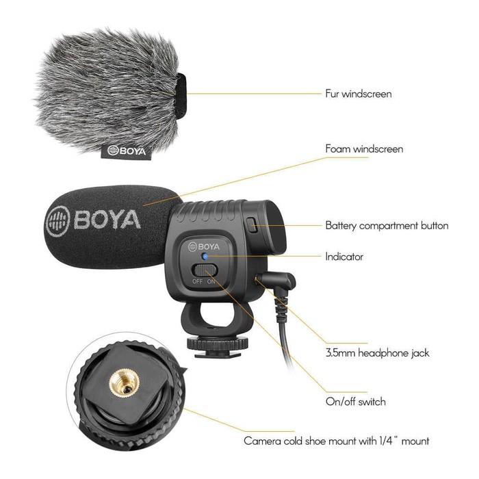 BOYA BY-BM3011 Cardioid Compact Shotgun Mic for Camera, Smartphone etc