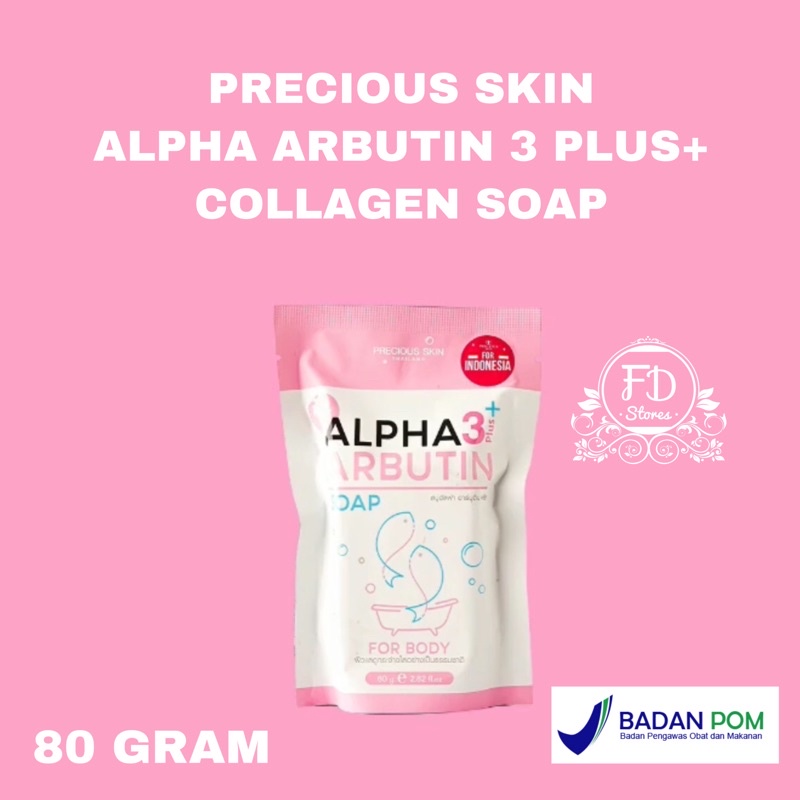 BPOM Alpha Arbutin 3 Plus Collagen Whitening Soap / Sabun Pemutih Badan / Sabun Batang / 80Gram